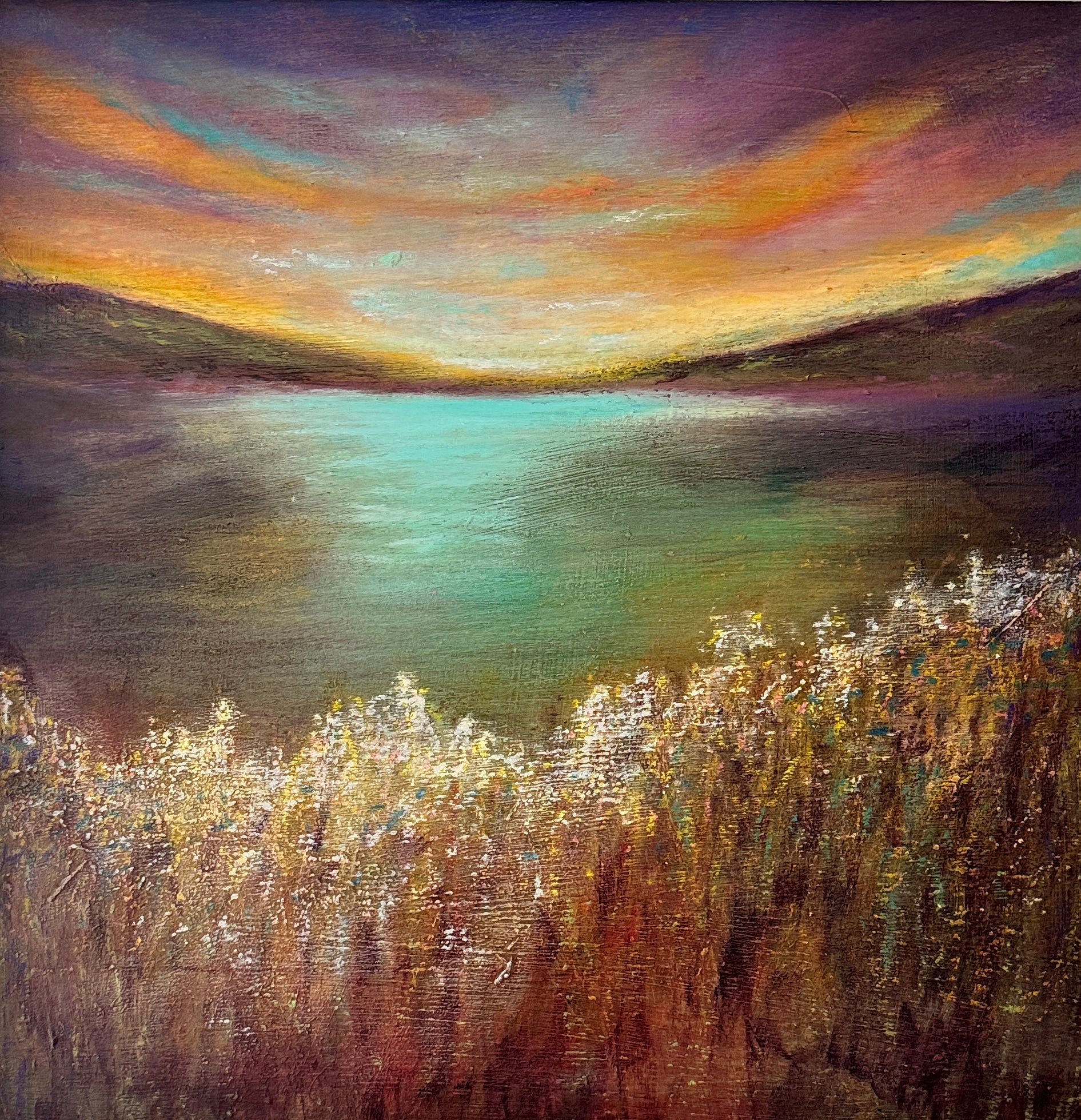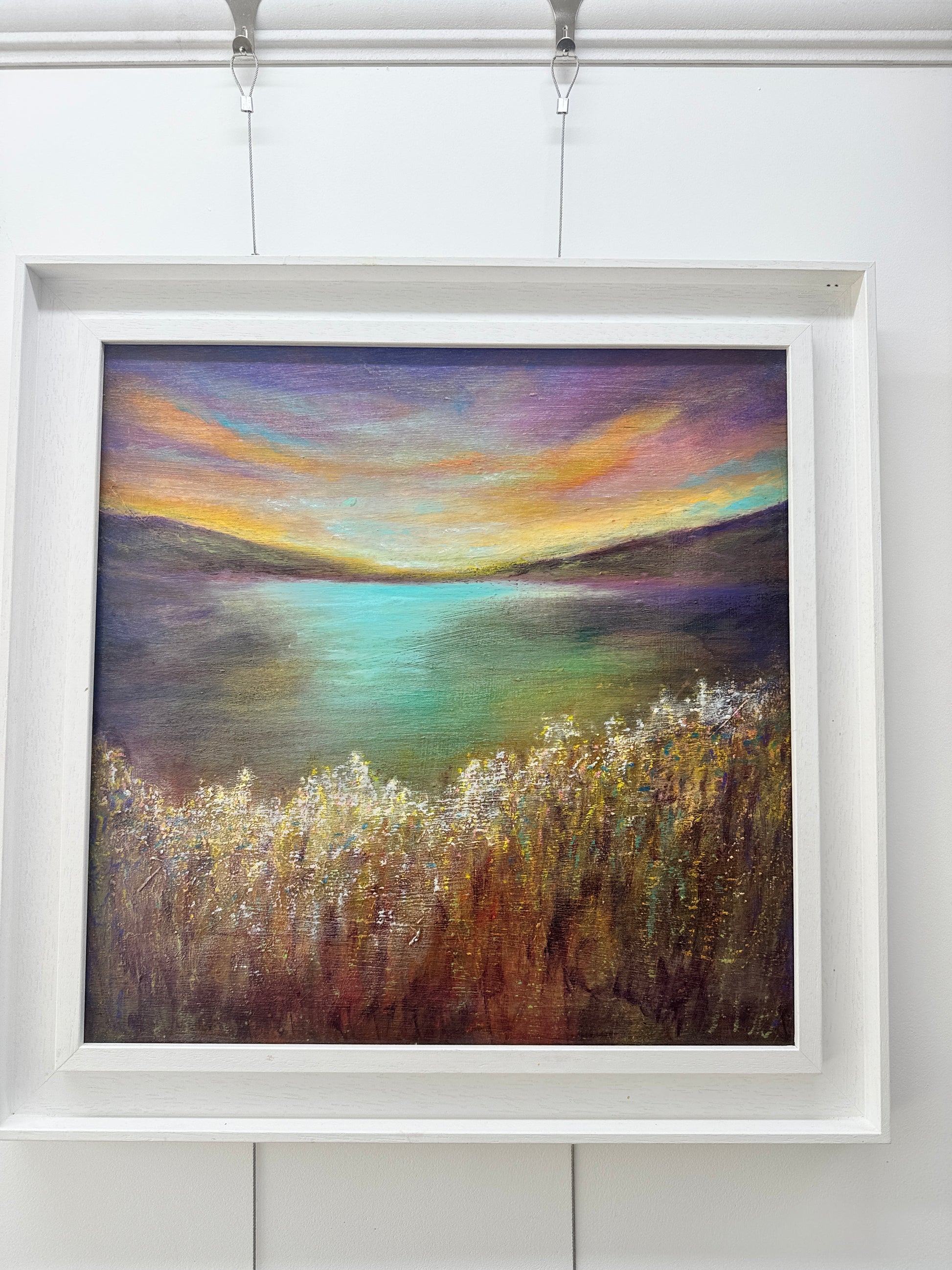 South Downs Sunrise in 50mm St Ives Style Frame artwork 40cm x 40cm . Acrylic paint gold leaf on board.