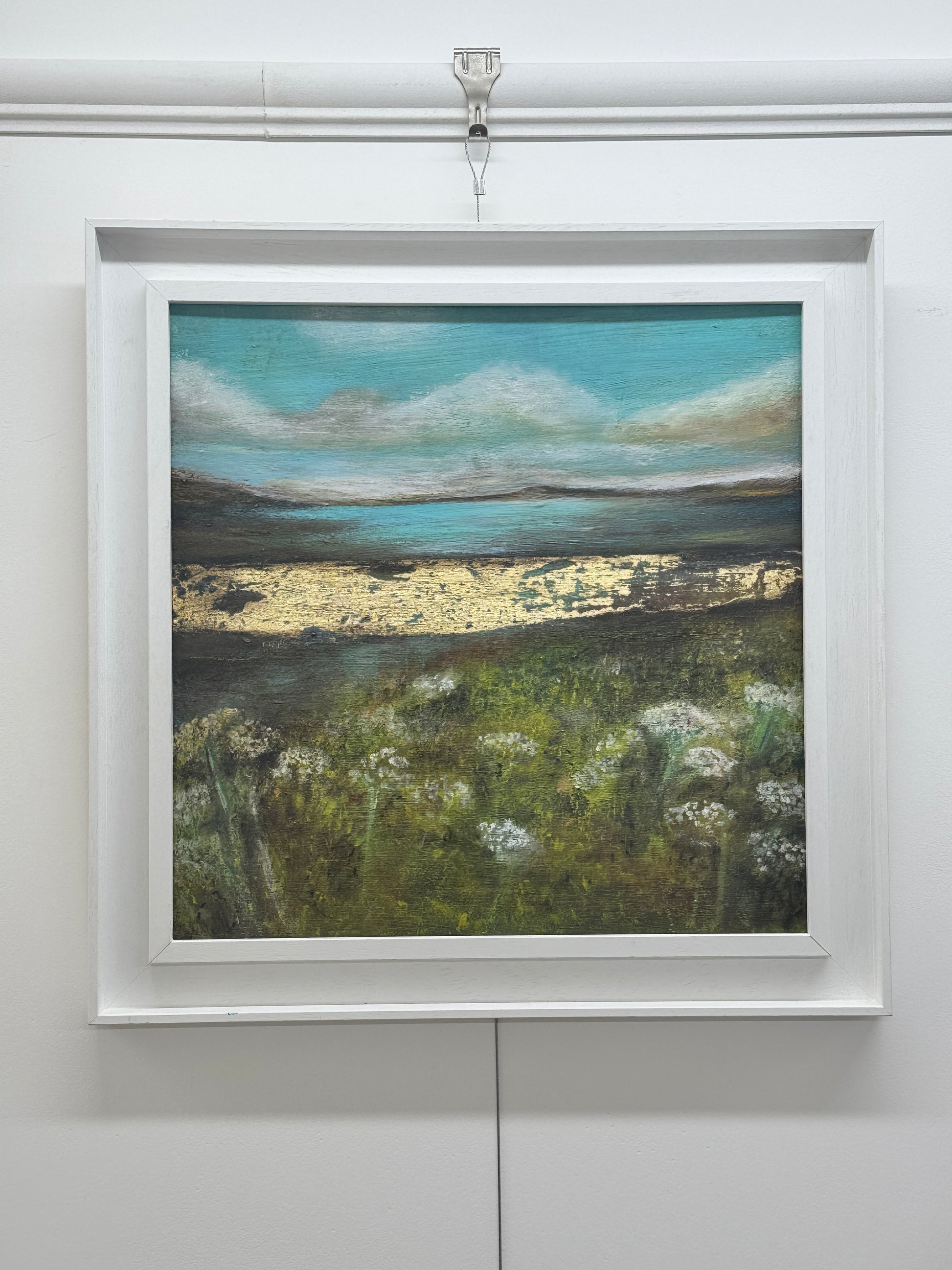 Prinsted harbour in 50mm St Ives Style Frame artwork 40cm x 40cm . Acrylic paint gold leaf on board.